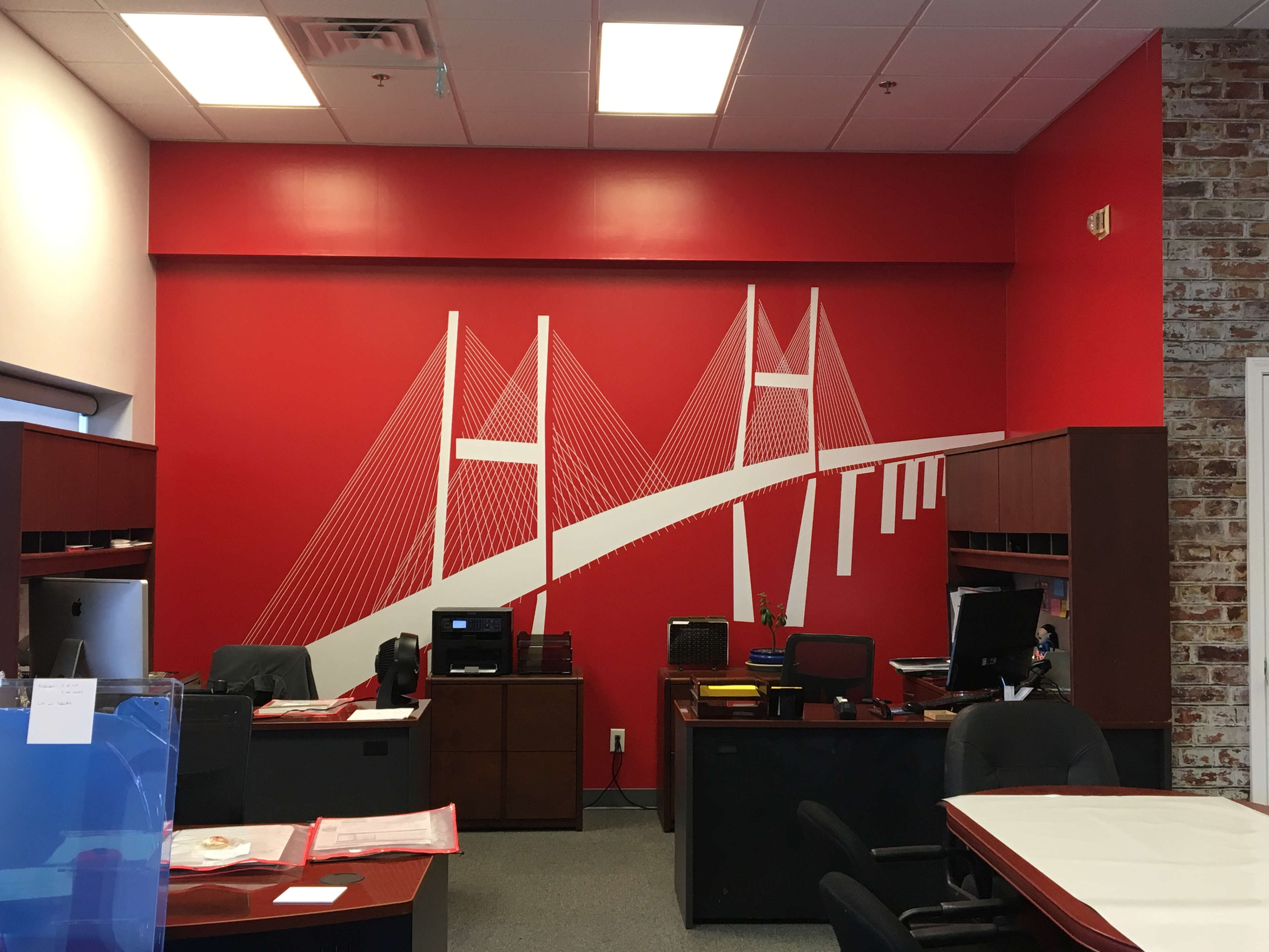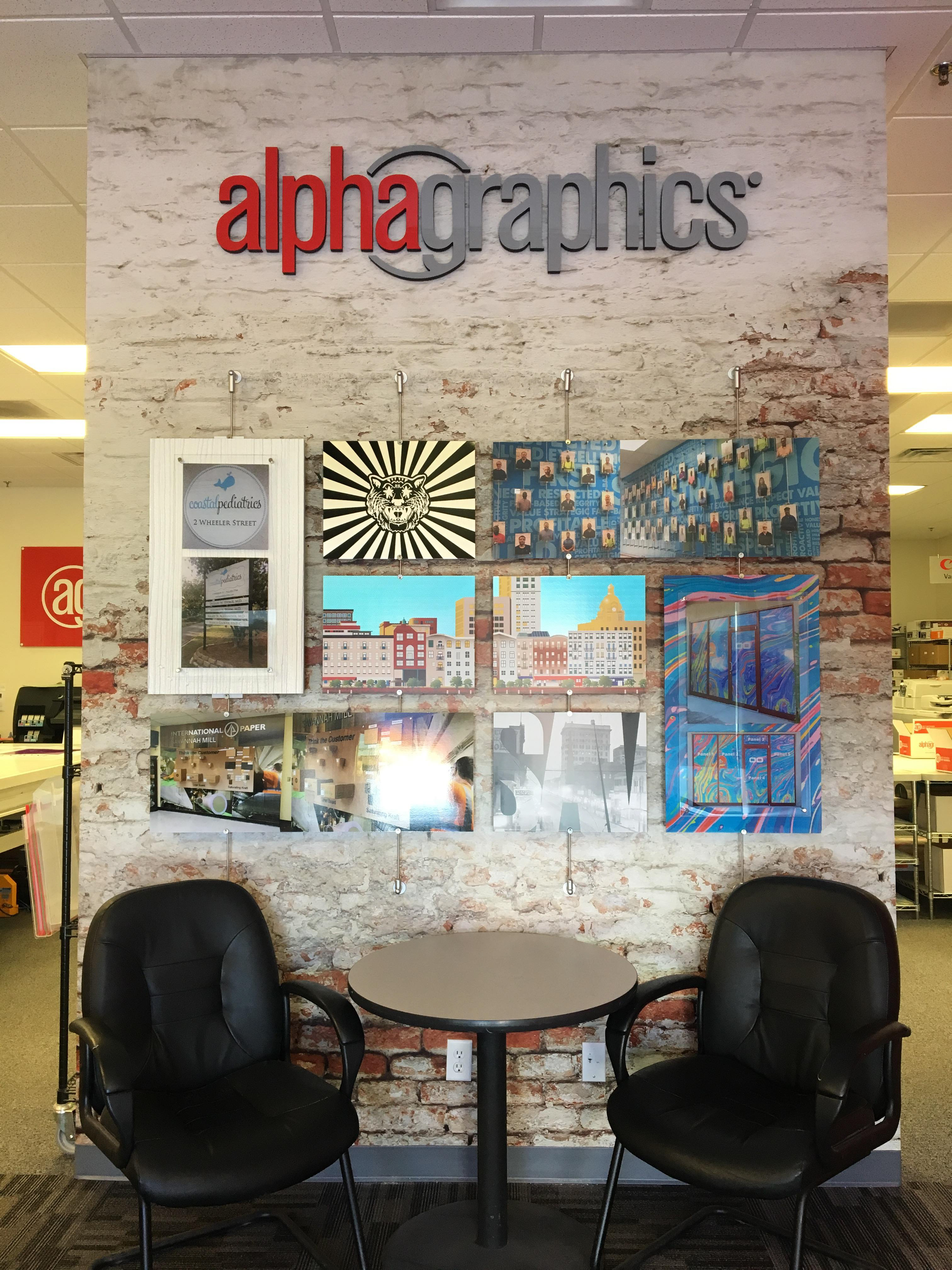 Wall vinyls and displays designed to create a more engaging office environment and advertise our services. I transformed our plain white walls into a more attractive atmosphere while also highlighting our capabilities.